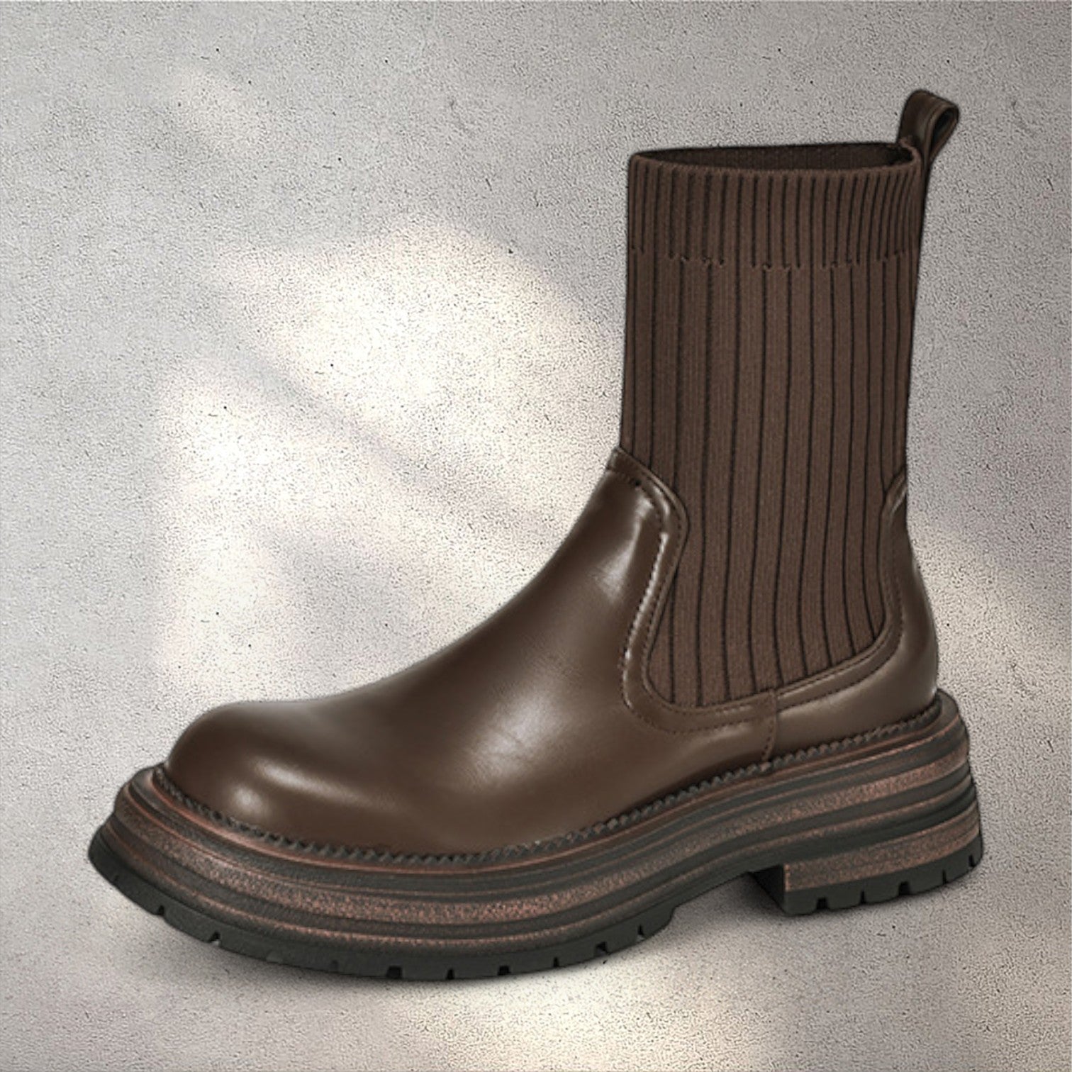 These boots are made from a mix of faux leather and stretch knit fabric that delivers durability, flexibility, and warmth. The chunky sole with ankle-high design provides traction and a modern silhouette. Perfect for casual winter outfits, city walks, or pairing with everyday looks.